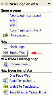صفحة جديدة في موقعك ، قم بما يلي : 1- من قائمةFile حدد خيار New ثم Page or Web حتى تفتح مربع حوار New ثم Blank Page . 2- سوف يعرض لك المربع New قوالب متنوعة لصفحات ويب من خلال Page templates . عندما
