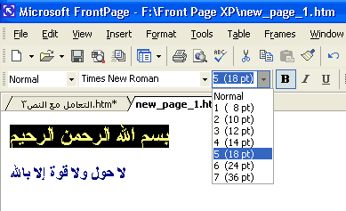 أيضاً يتيح لك فرونت بيج تزيين النص وتنسيقه بالإضافة إلى وضع النص الأصلي في الصفحة ، وستلاحظ إن كان لك معرفة وتعامل سابق مع برامج أوفيس أن الأمر لا يختلف كثيراً مع فرونت بيج وستجد أن إضافة النص سهل جداً كما لو أنك تكتب ملف وورد وتقوم بتنسيقه ، يمكنك باستخدام فرونت بيج :