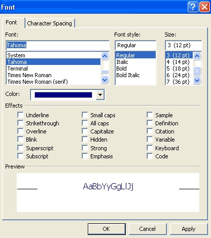 لتفتح مربع حوار Font يجب الآن أن يظهر عنوان الفقرة