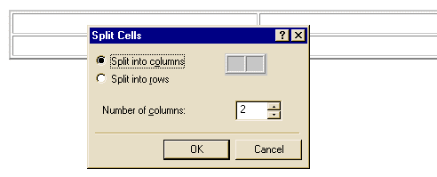 أمر Split Cells لتفتح مربع حوار Split