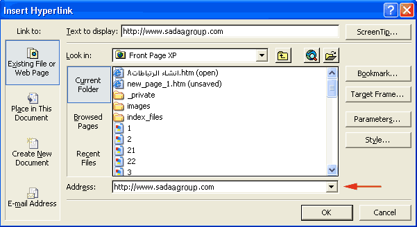 الارتباط إليها . انقر زر OK لتحفظ الارتباط وتغلق مربع